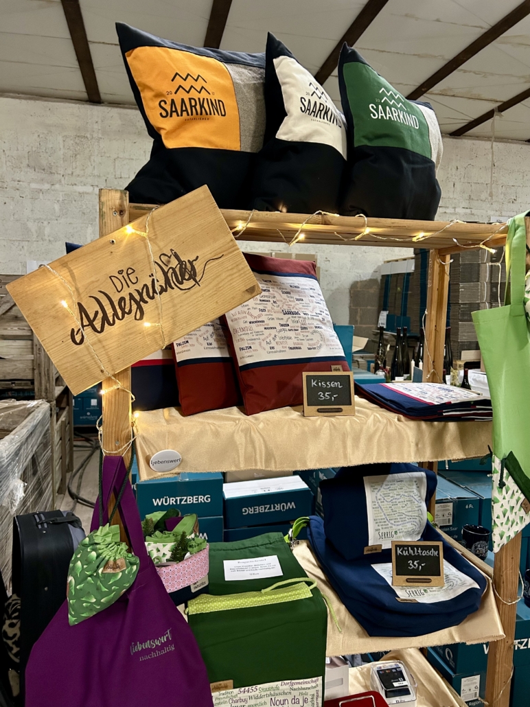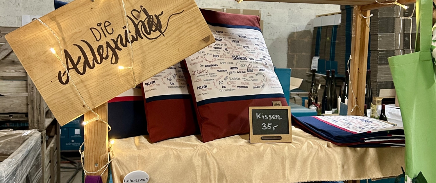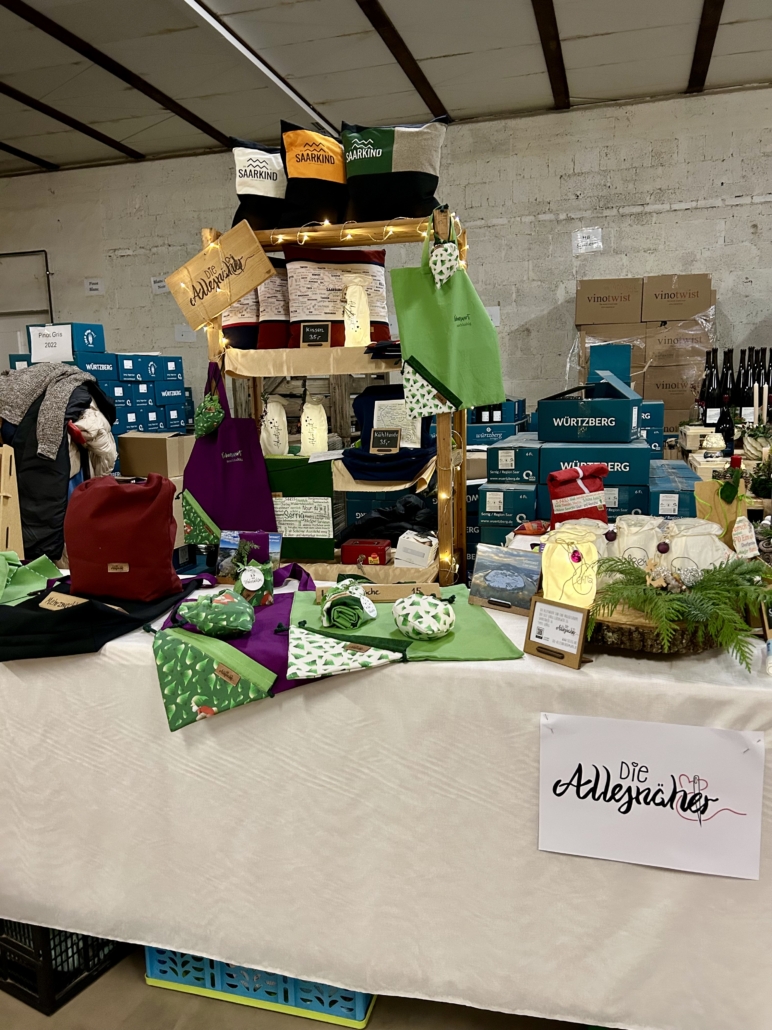 Am ersten Adventswochenende waren die Serriger Allesnäher Teil des WEINachtsmarkts auf dem Weingut Würtzberg in Serrig. In gemütlicher Atmosphäre und bei vielen Besucher*innen konnten diese an zwei Tagen selbstgenähte Kissen, Stoffbeutel und Adventsdeko aus Stoff anbieten.